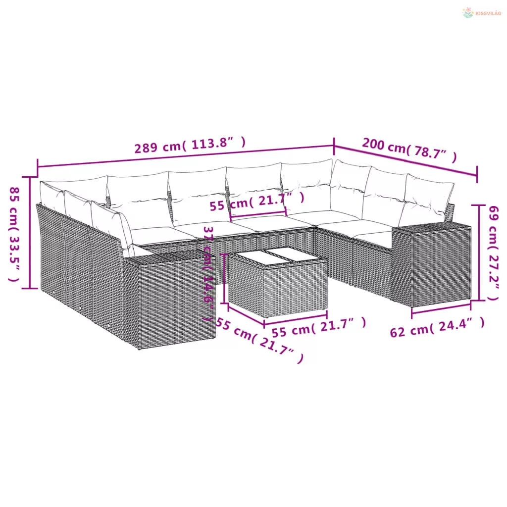 10 részes barna polyrattan kerti ülőgarnitúra párnákkal