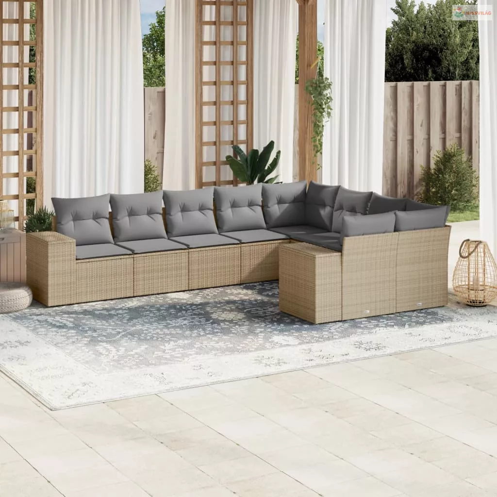 9 részes bézs polyrattan kerti ülőgarnitúra párnákkal
