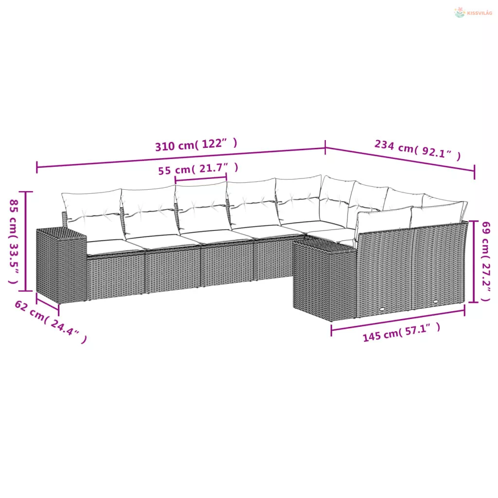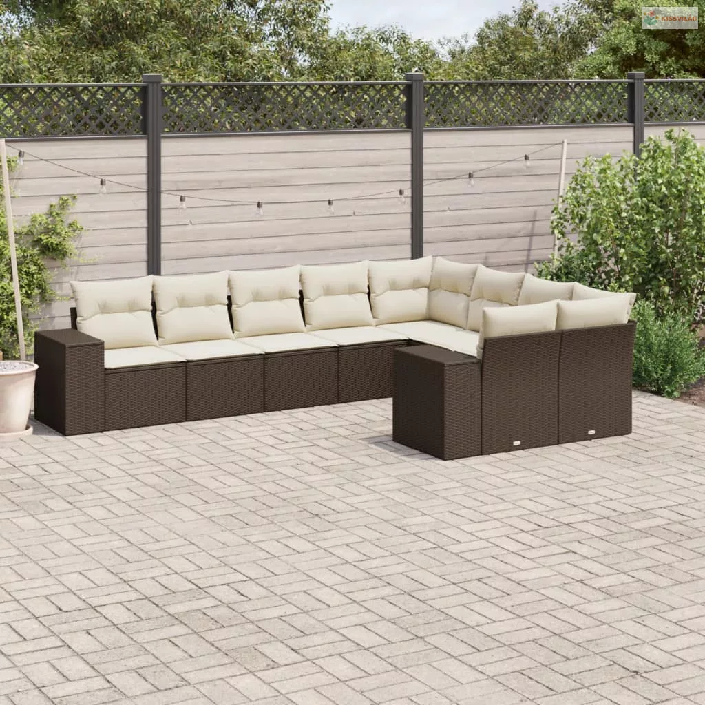 9 részes barna polyrattan kerti ülőgarnitúra párnákkal
