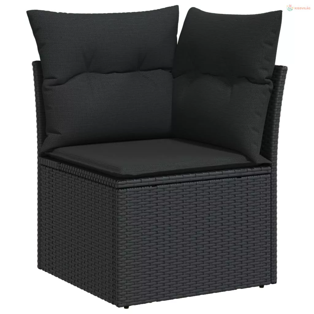 4 részes fekete polyrattan kerti ülőgarnitúra párnákkal