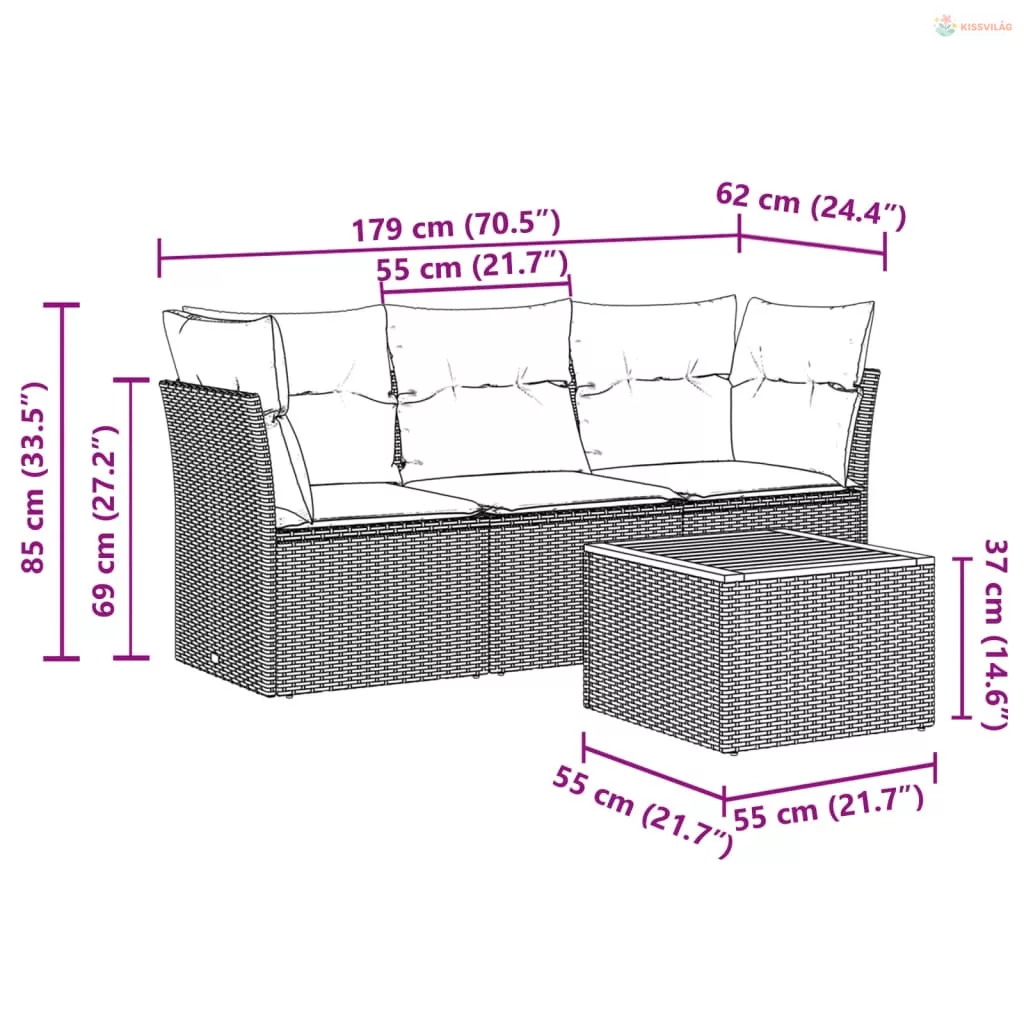 4 részes szürke polyrattan kerti ülőgarnitúra párnákkal