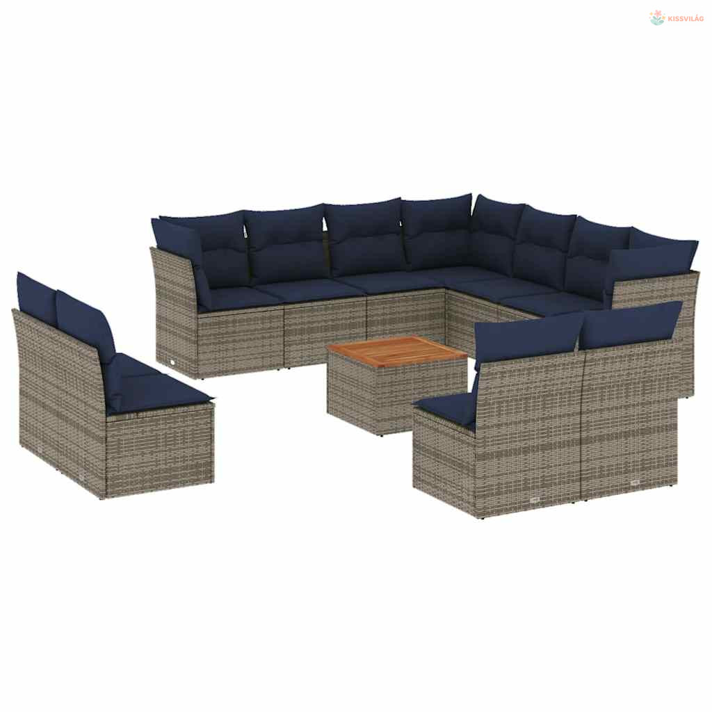12 részes szürke polyrattan kerti ülőgarnitúra párnákkal