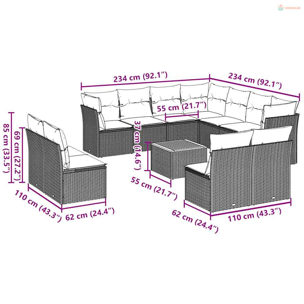 • Moduláris kialakítás: Ez a kerti bútorkészlet moduláris felépítésű, így teljesen rugalmas és könnyen mozgatható, így személyre szabott kerti bútor-elrendezést alakíthat ki.