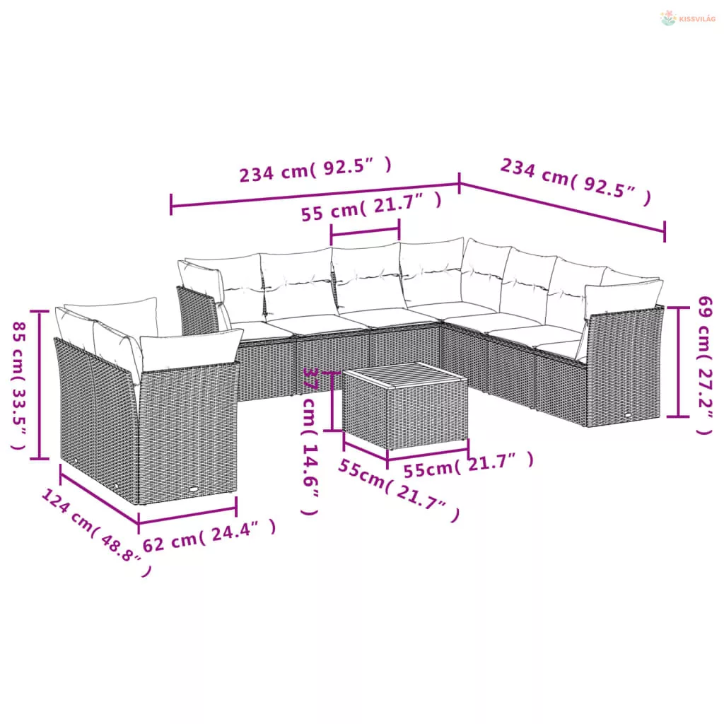 11 részes bézs polyrattan kerti ülőgarnitúra párnákkal