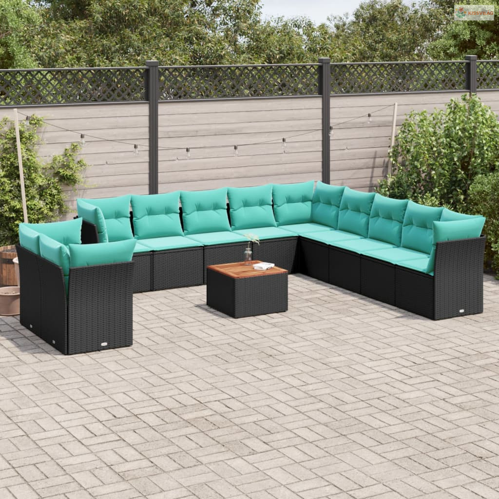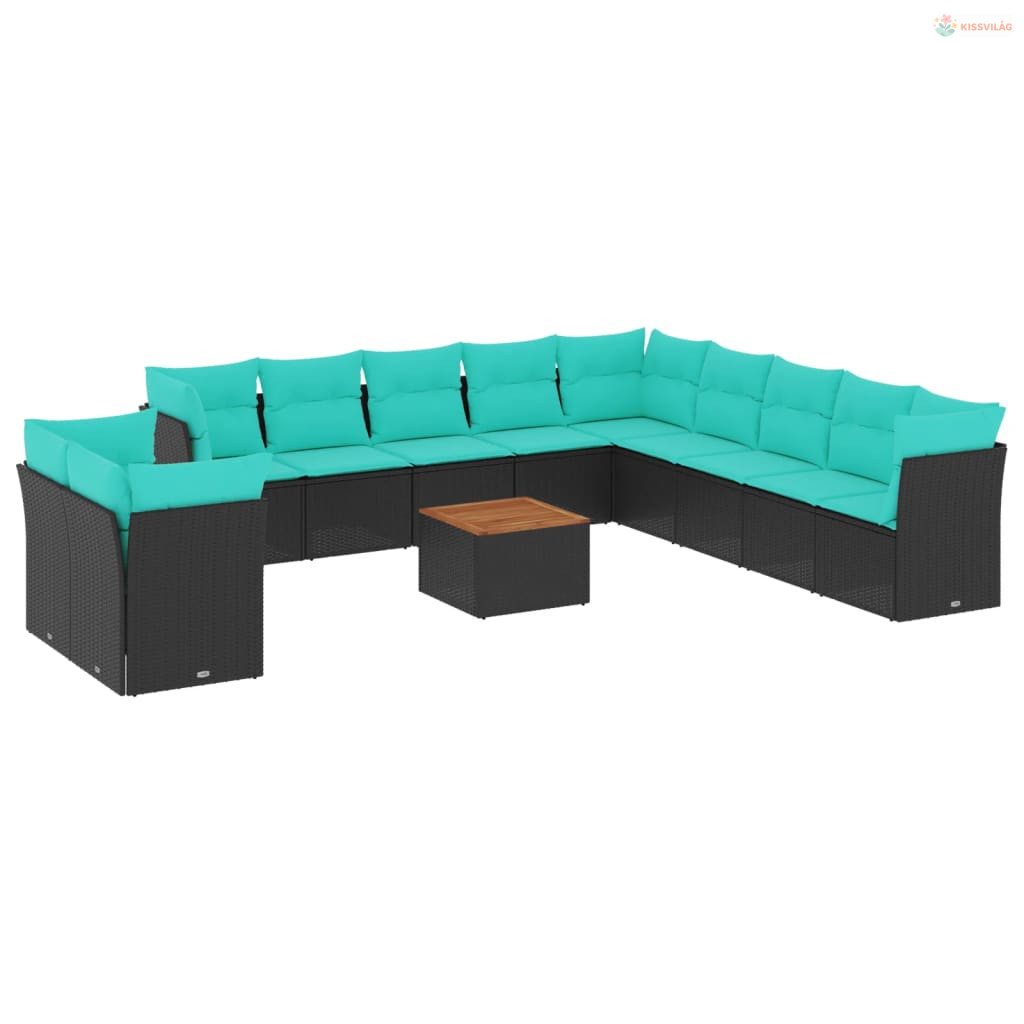 12 részes fekete polyrattan kerti ülőgarnitúra párnákkal