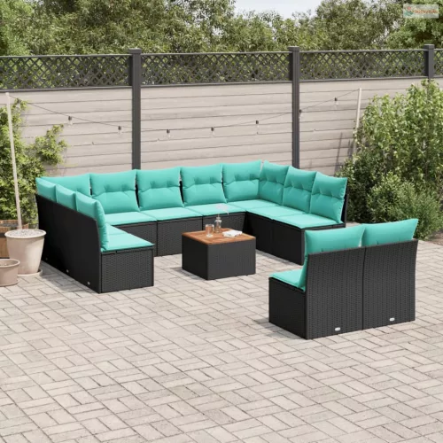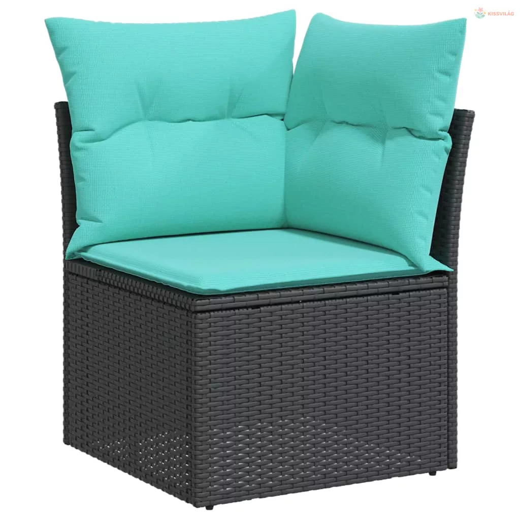 12 részes fekete polyrattan kerti ülőgarnitúra párnákkal