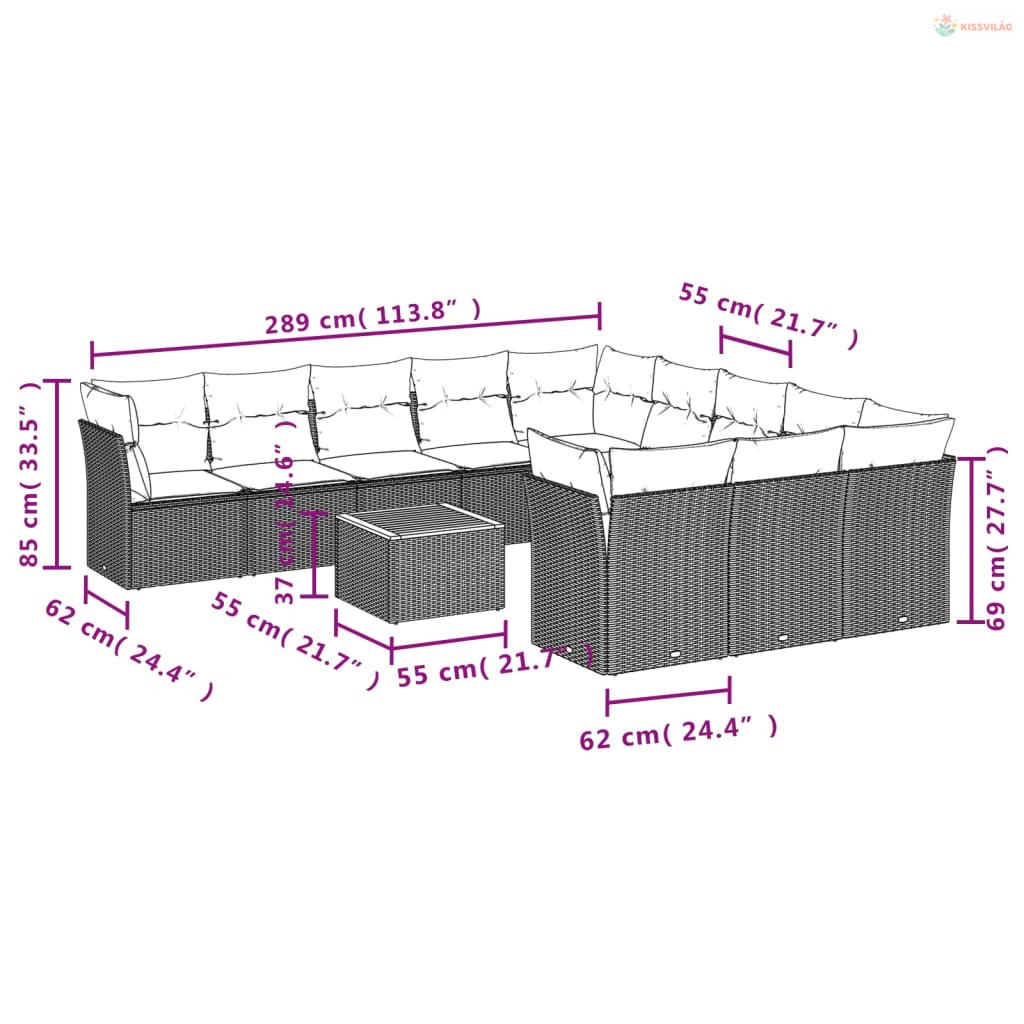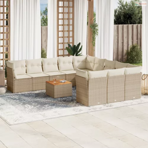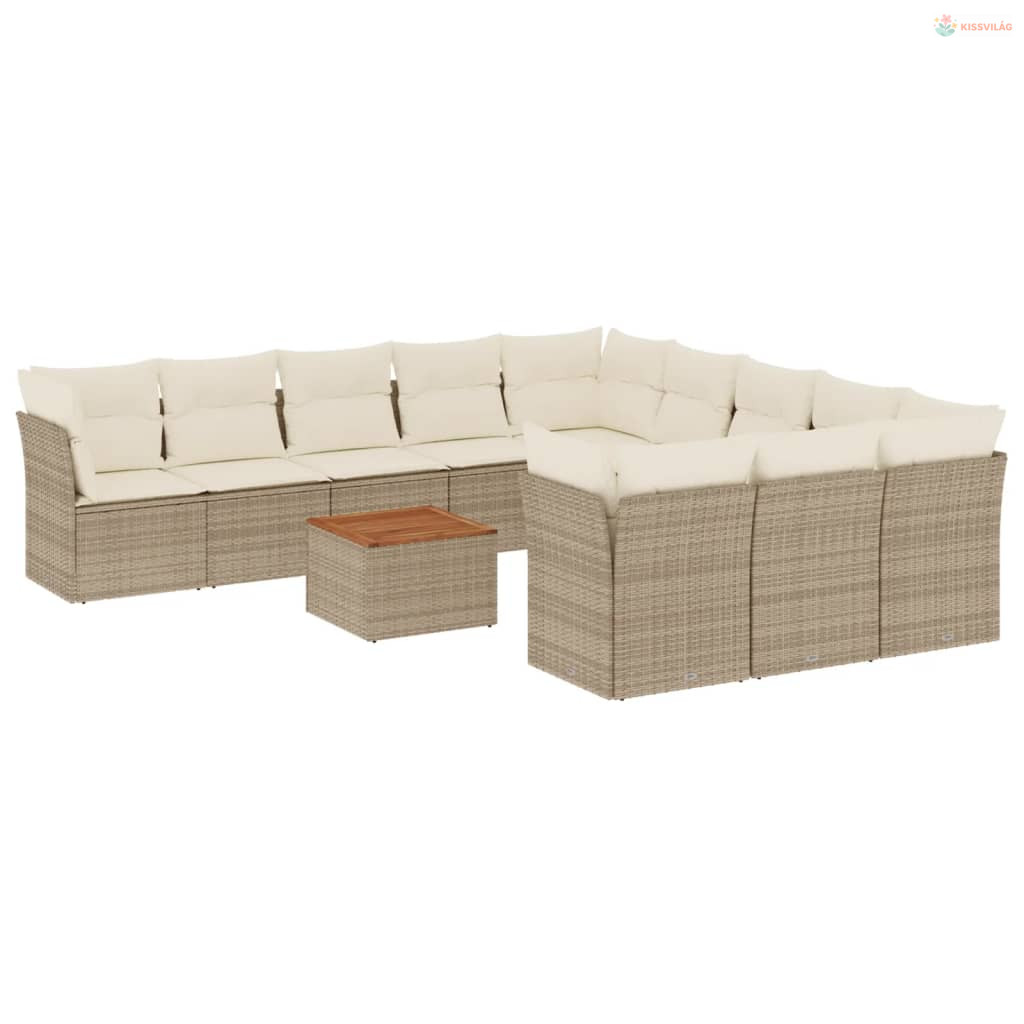 12 részes bézs polyrattan kerti ülőgarnitúra párnákkal