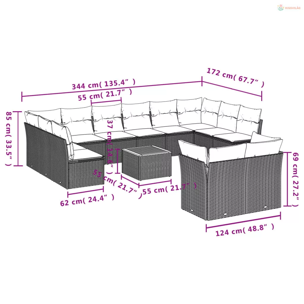13 részes fekete polyrattan kerti ülőgarnitúra párnákkal