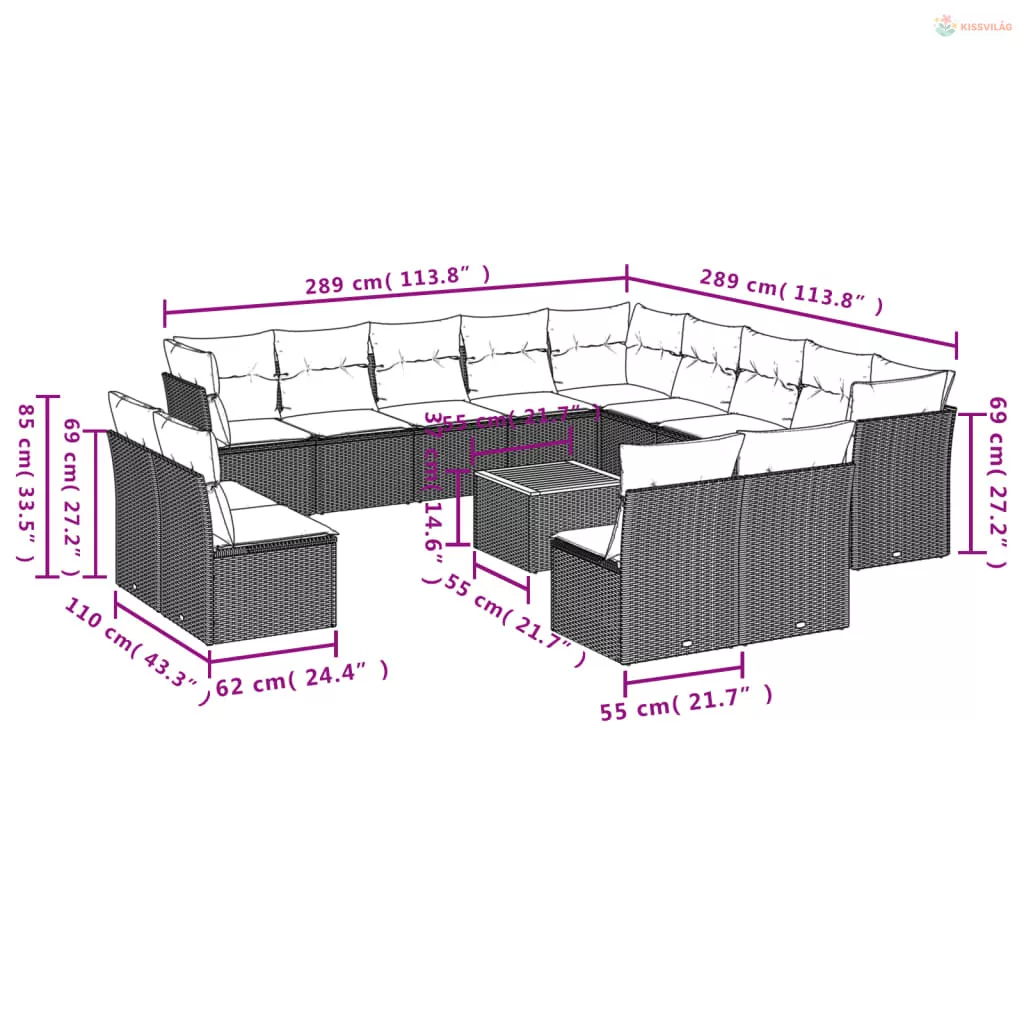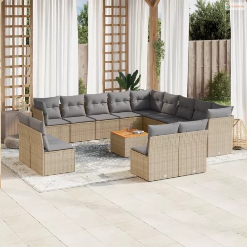 14 részes vegyes bézs polyrattan kerti ülőgarnitúra párnával