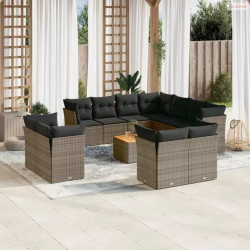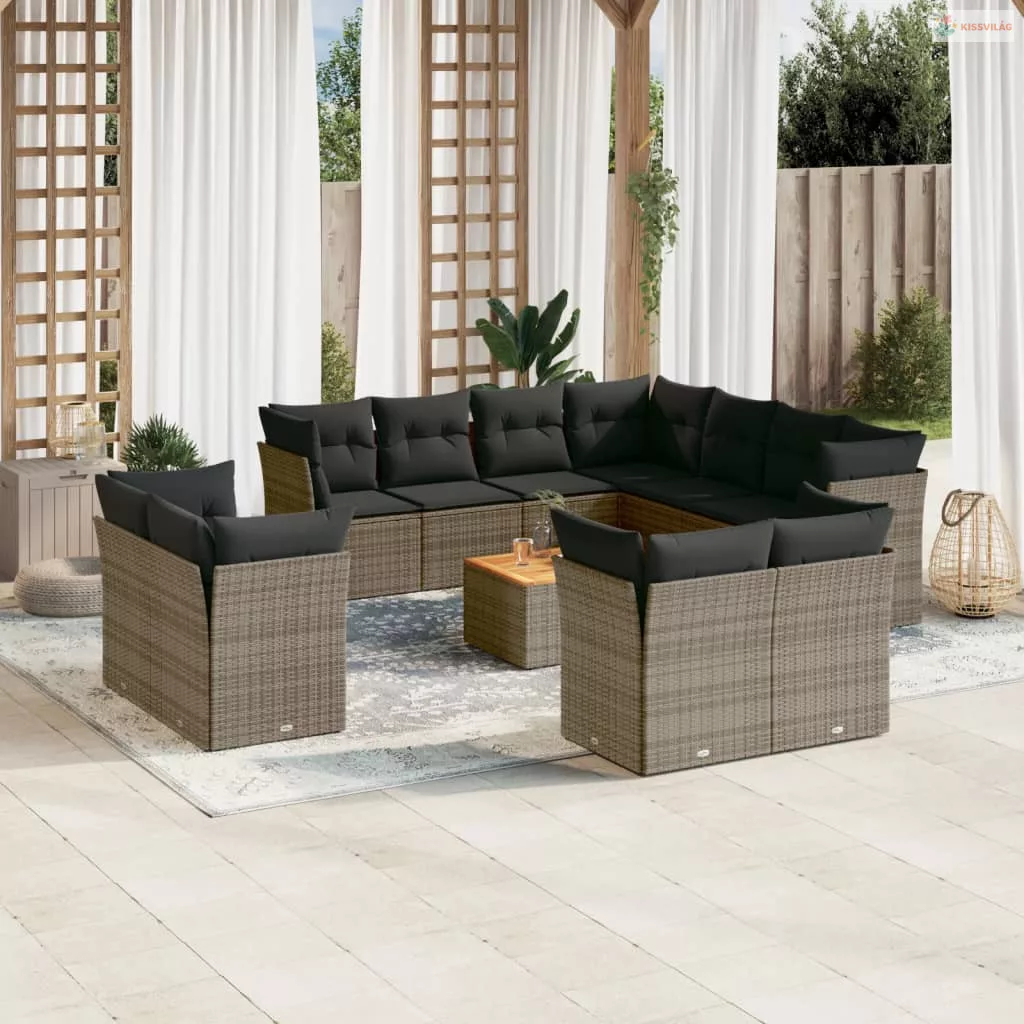 12 részes szürke polyrattan kerti ülőgarnitúra párnákkal