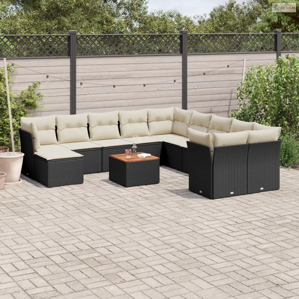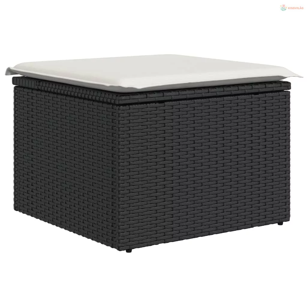 12 részes fekete polyrattan kerti ülőgarnitúra párnákkal