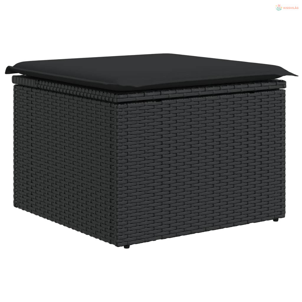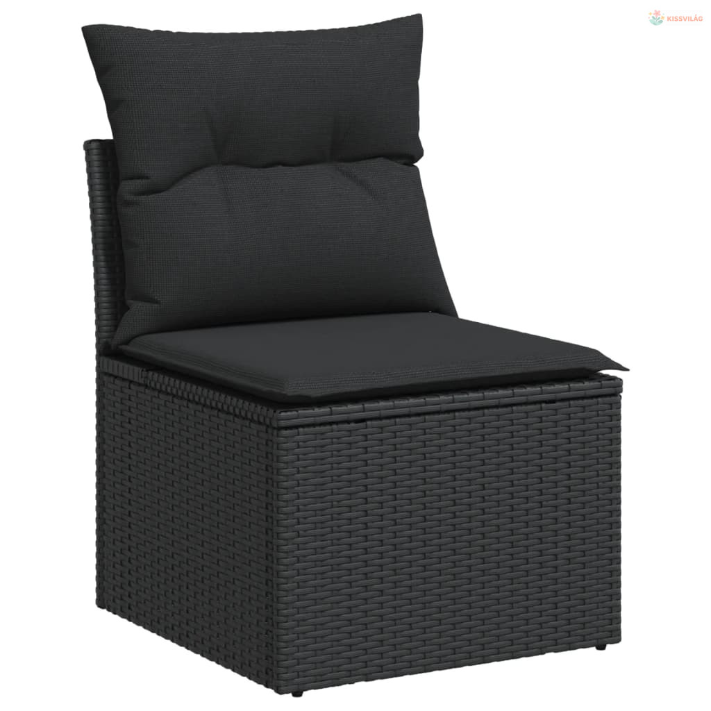 13 részes fekete polyrattan kerti ülőgarnitúra párnákkal