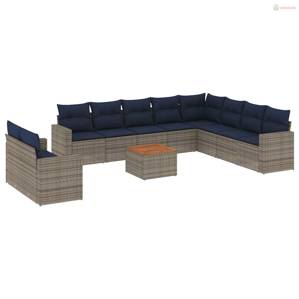 11 részes szürke polyrattan kerti ülőgarnitúra párnákkal