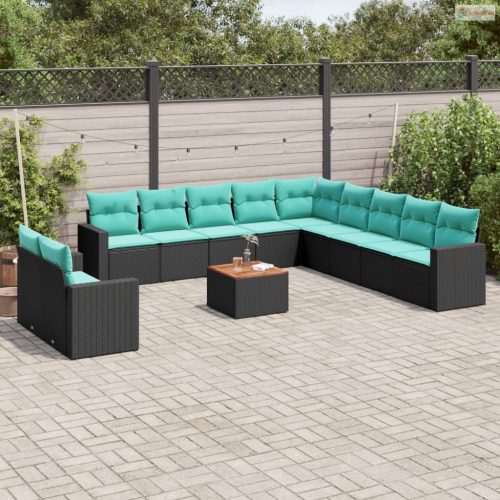 12 részes fekete polyrattan kerti ülőgarnitúra párnákkal