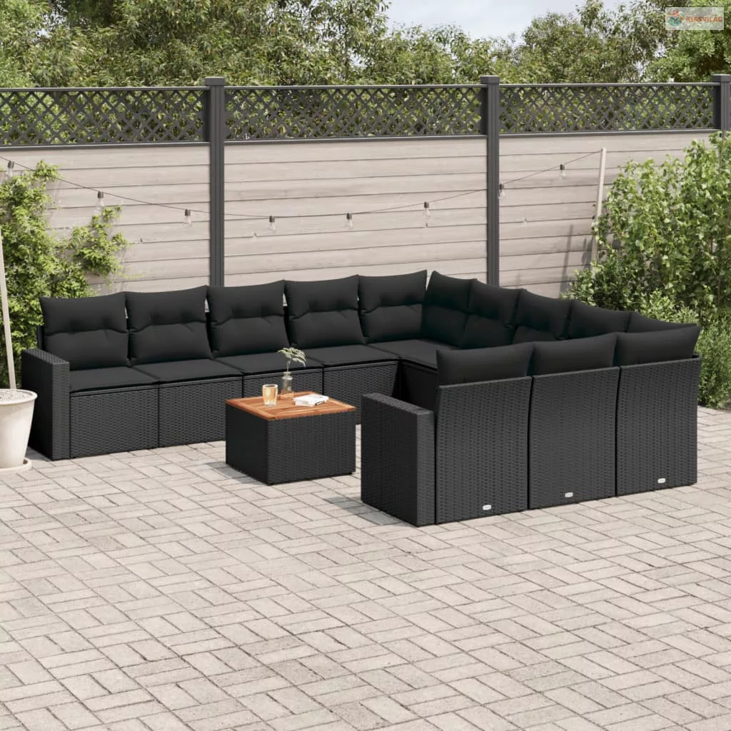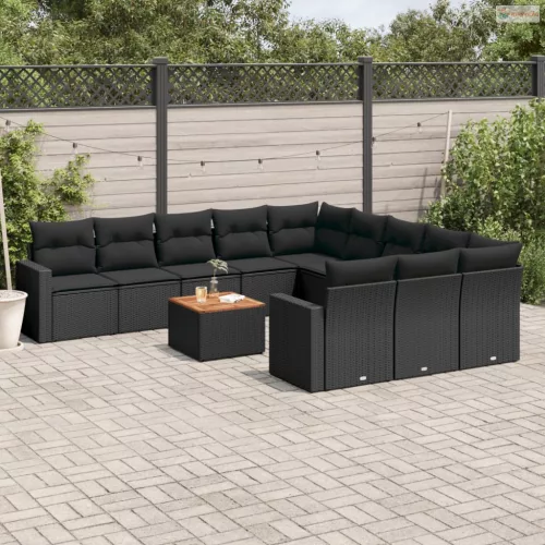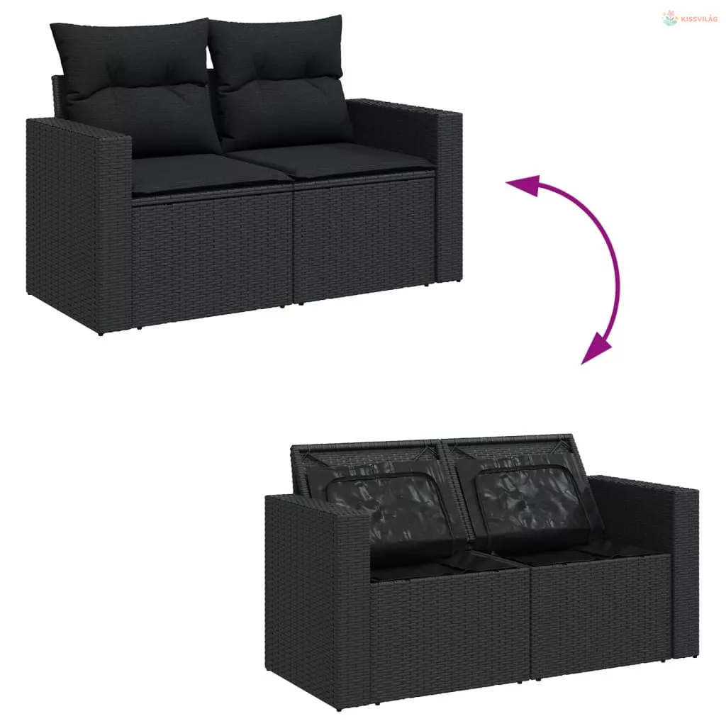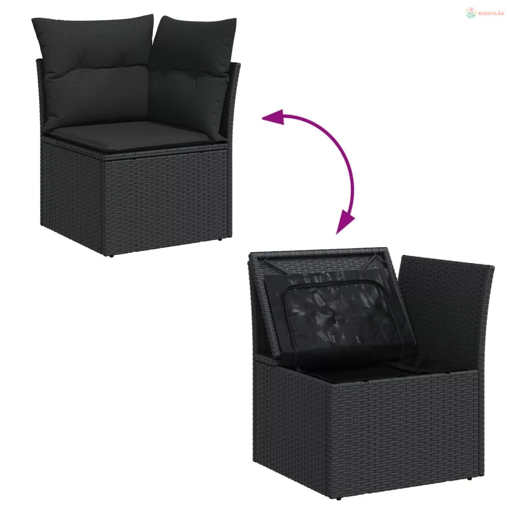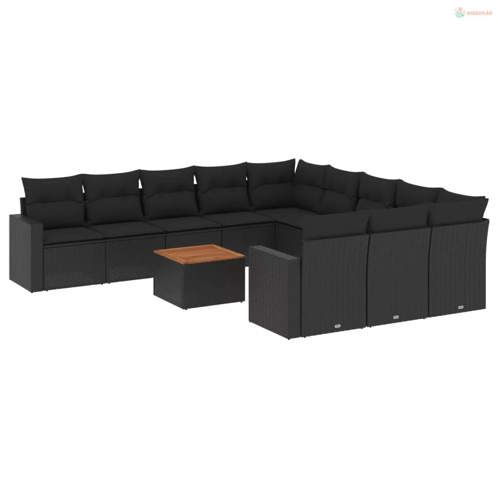 12 részes fekete polyrattan kerti ülőgarnitúra párnákkal