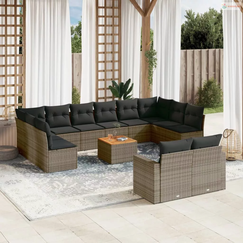 13 részes szürke polyrattan kerti ülőgarnitúra párnákkal