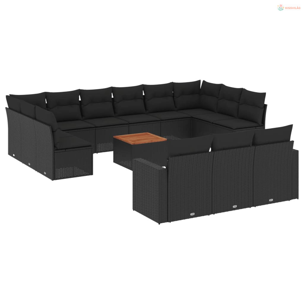 14 részes fekete polyrattan kerti ülőgarnitúra párnákkal
