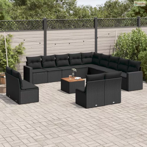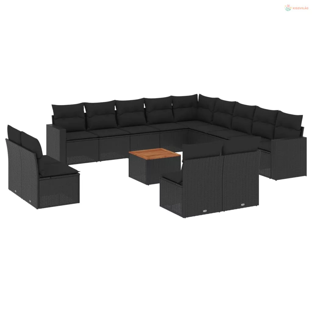 14 részes fekete polyrattan kerti ülőgarnitúra párnákkal