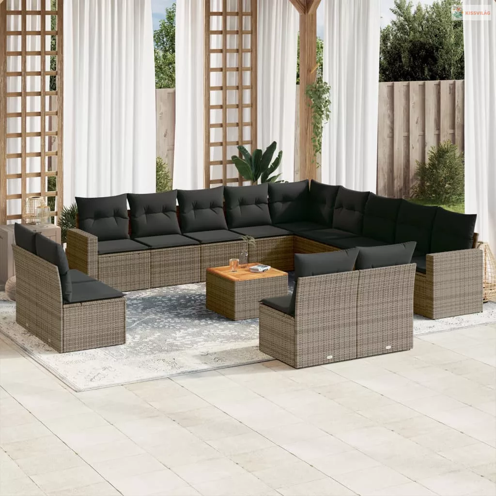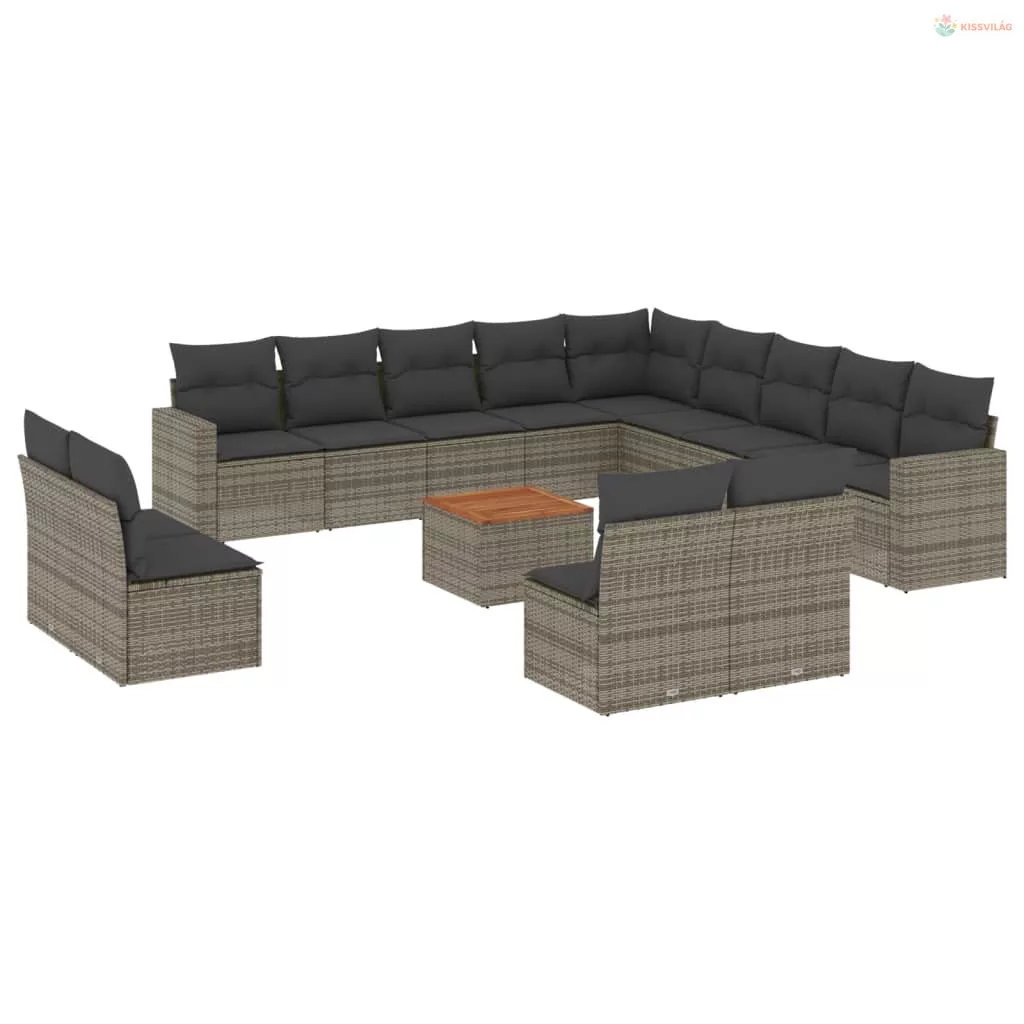 14 részes szürke polyrattan kerti ülőgarnitúra párnákkal