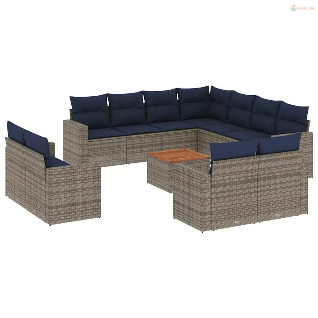 12 részes szürke polyrattan kerti ülőgarnitúra párnákkal