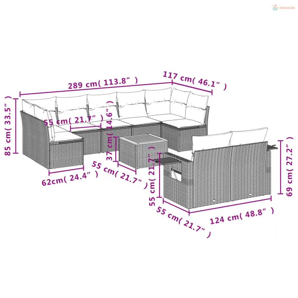 10 részes bézs polyrattan kerti ülőgarnitúra párnával