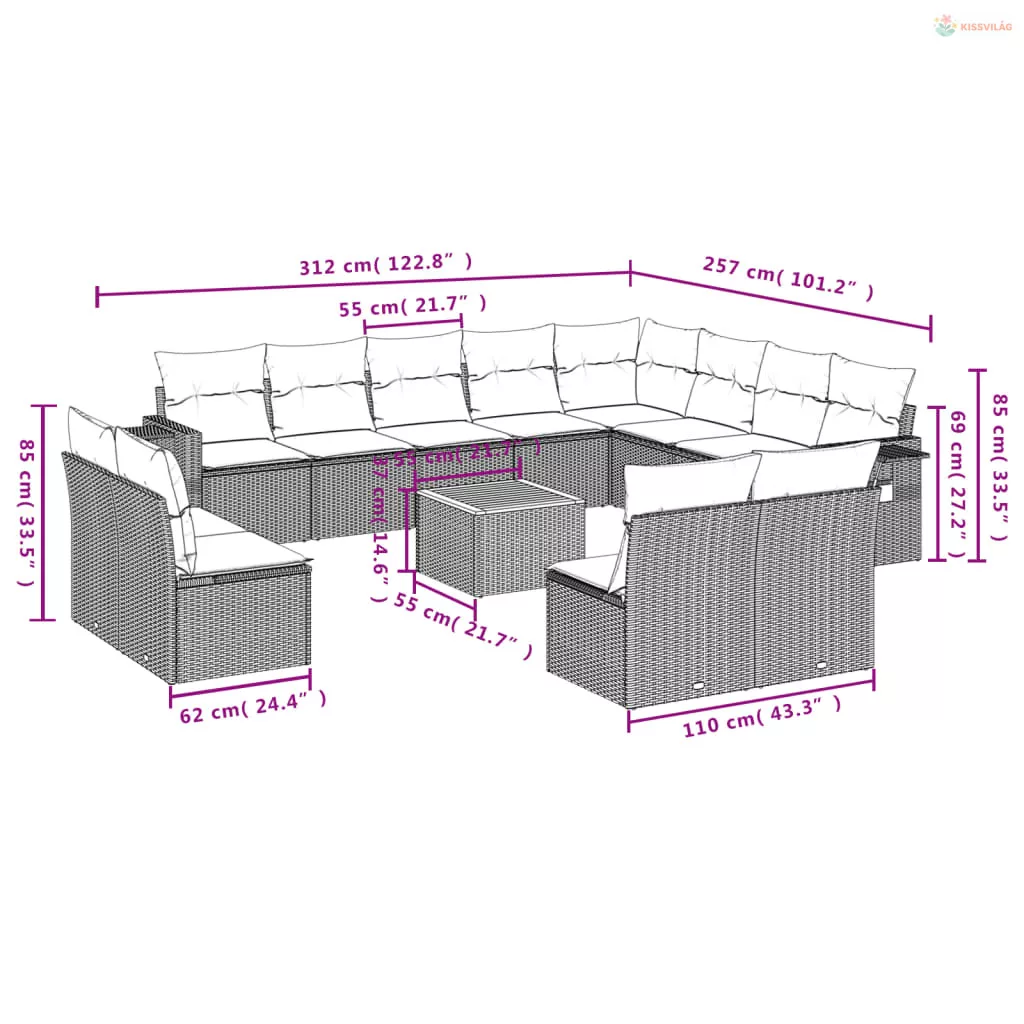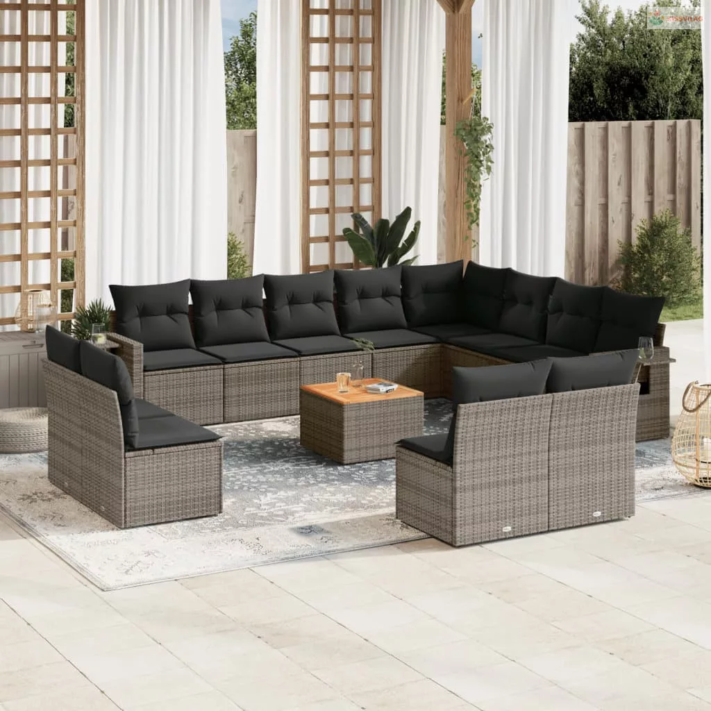 13 részes szürke polyrattan kerti ülőgarnitúra párnákkal