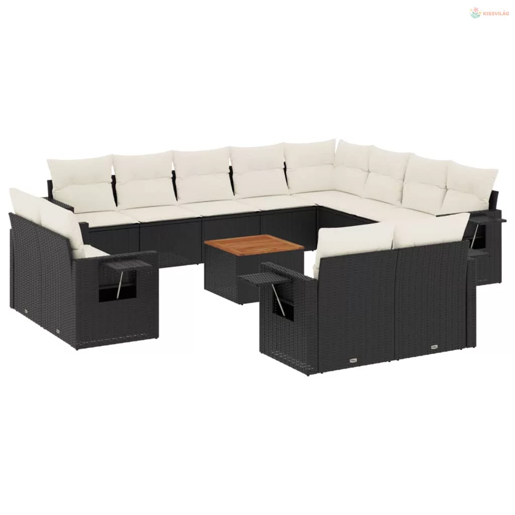 13 részes fekete polyrattan kerti ülőgarnitúra párnákkal