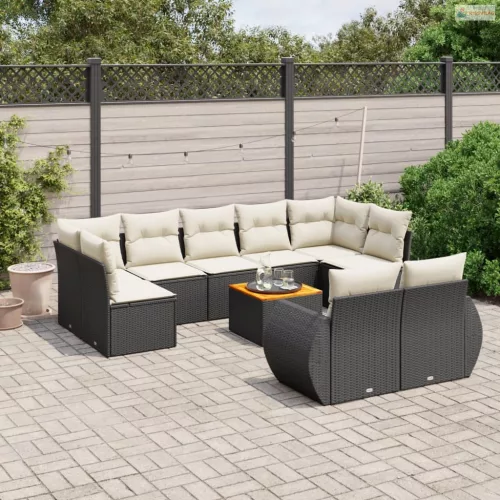 10 részes fekete polyrattan kerti ülőgarnitúra párnákkal