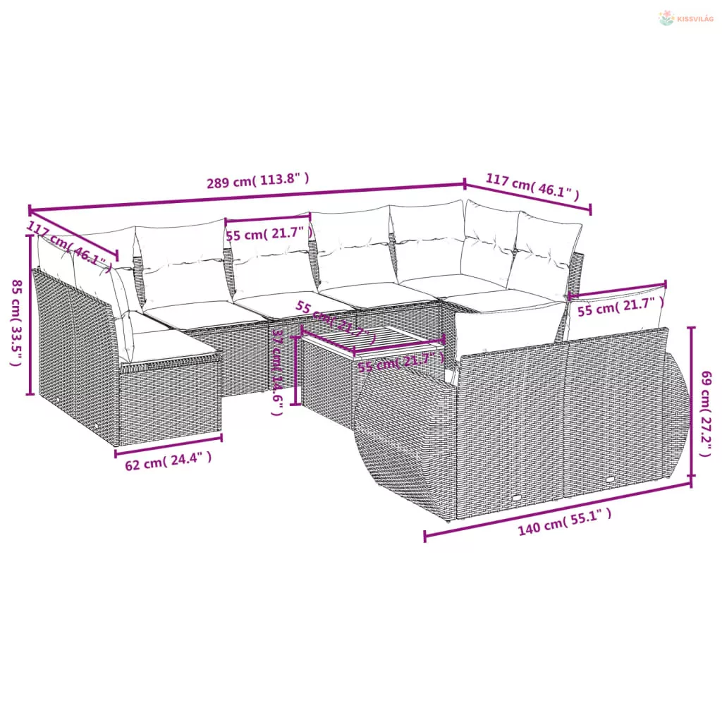 10 részes bézs polyrattan kerti ülőgarnitúra párnával