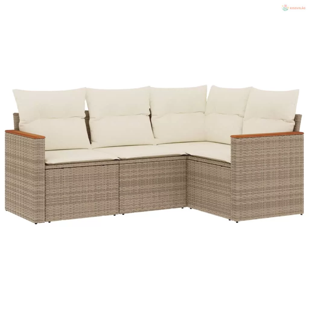 4 részes bézs polyrattan kerti ülőgarnitúra párnákkal
