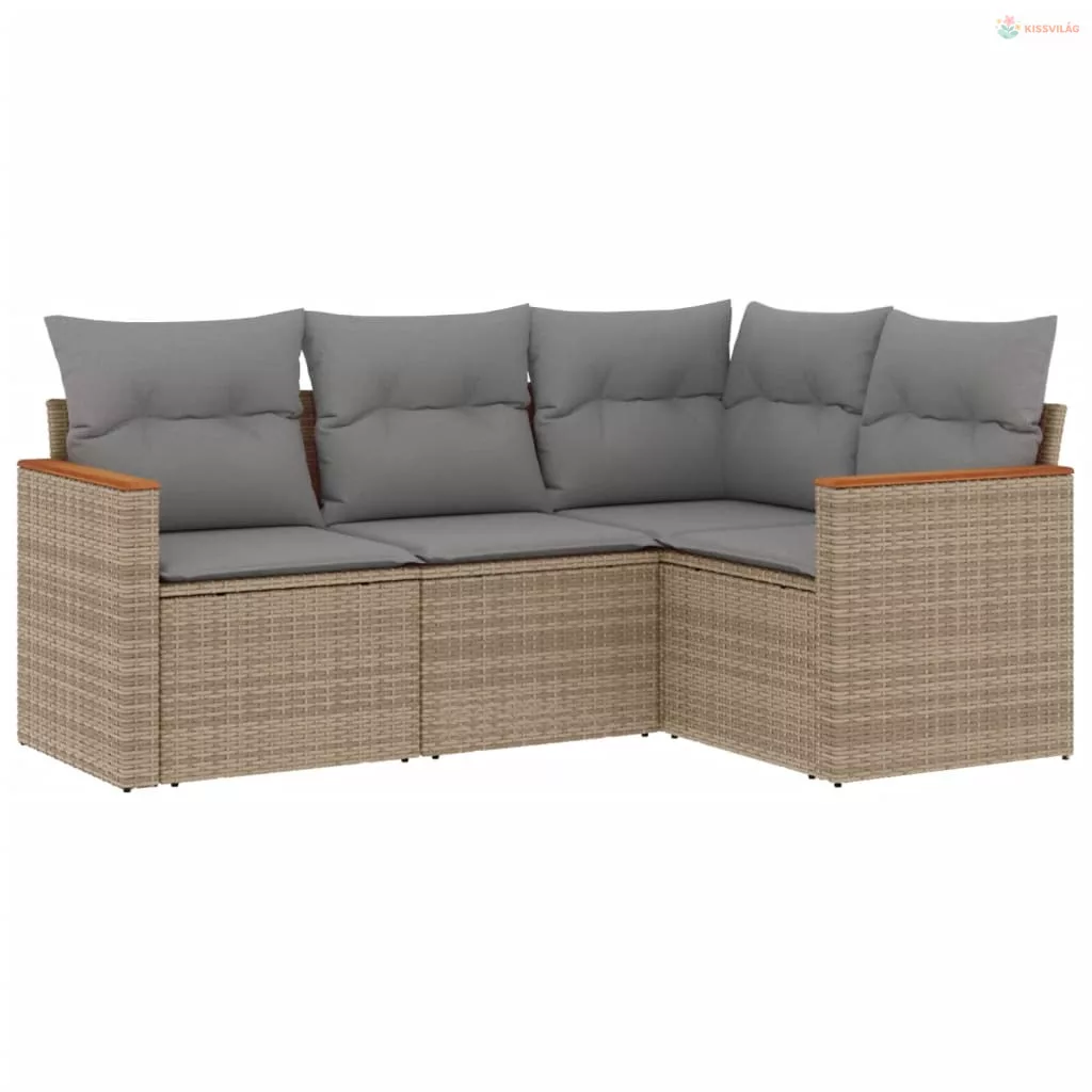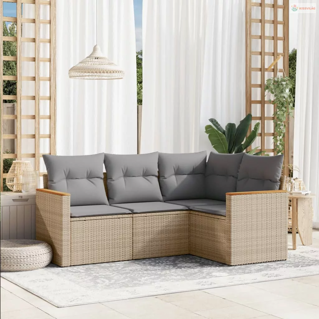 4 részes bézs polyrattan kerti ülőgarnitúra párnákkal