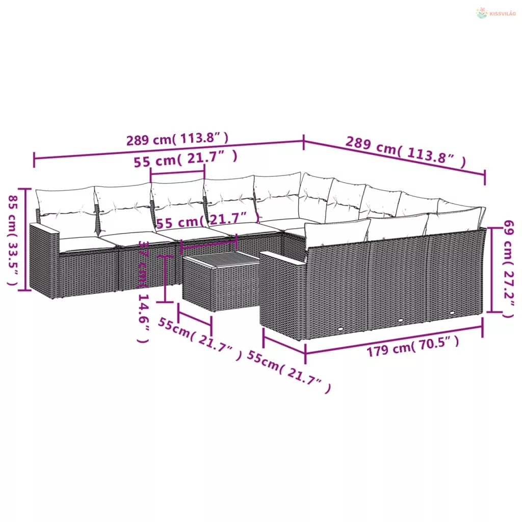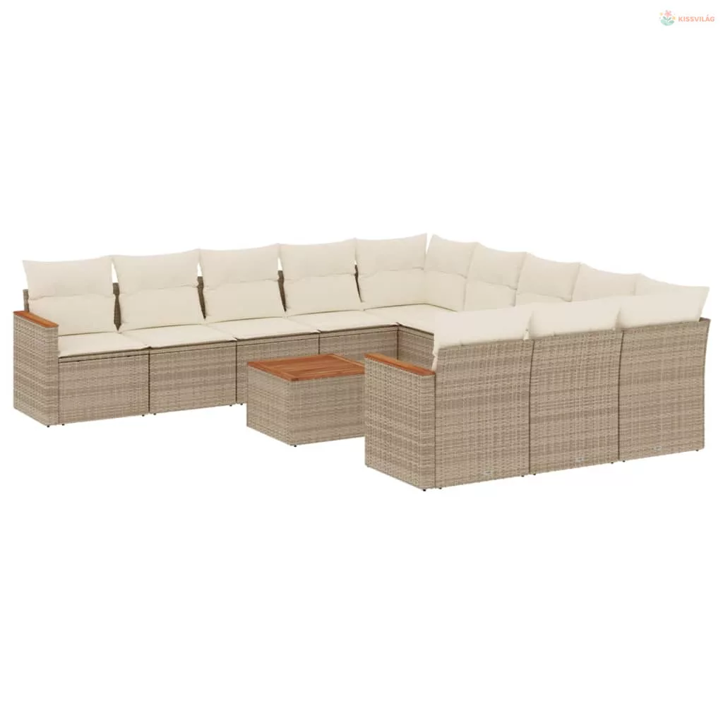 12 részes bézs polyrattan kerti ülőgarnitúra párnákkal