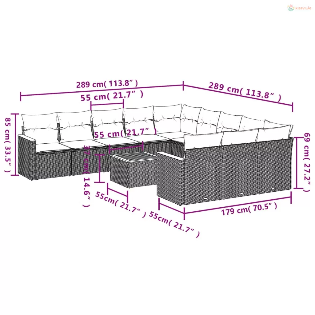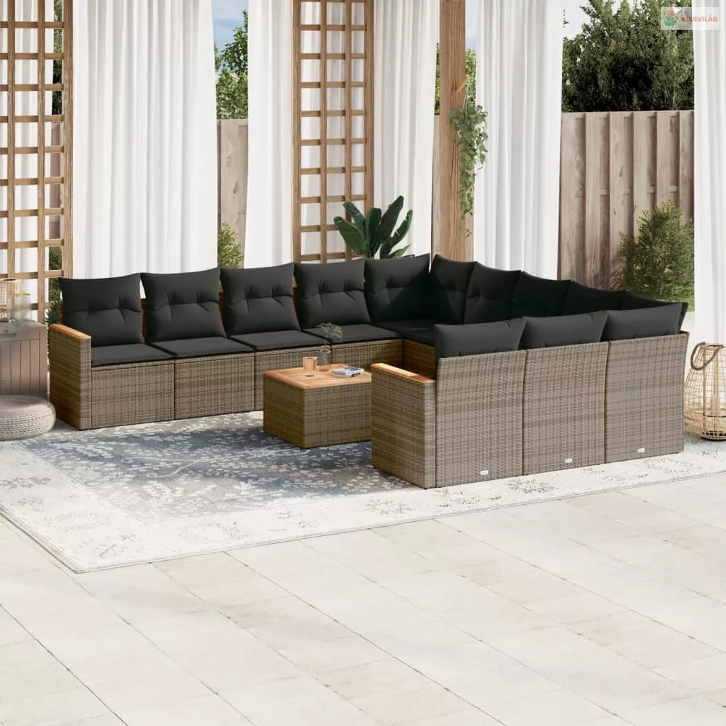 12 részes szürke polyrattan kerti ülőgarnitúra párnákkal