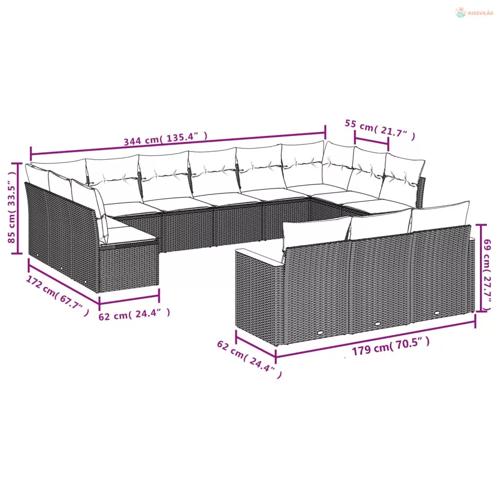 13 részes bézs polyrattan kerti ülőgarnitúra párnákkal