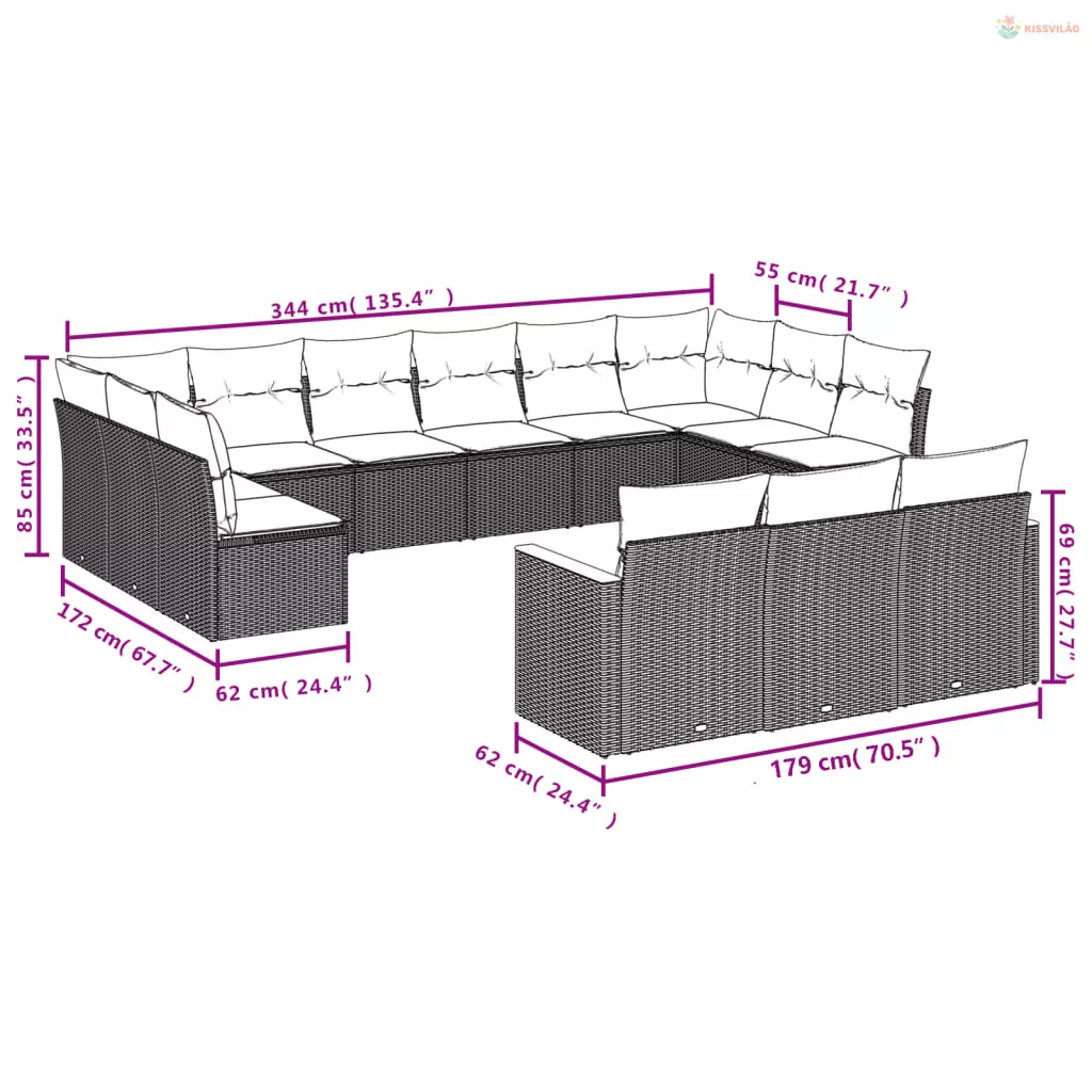 13 részes szürke polyrattan kerti ülőgarnitúra párnákkal