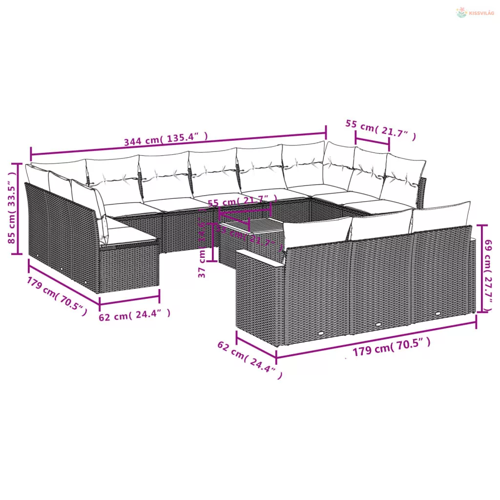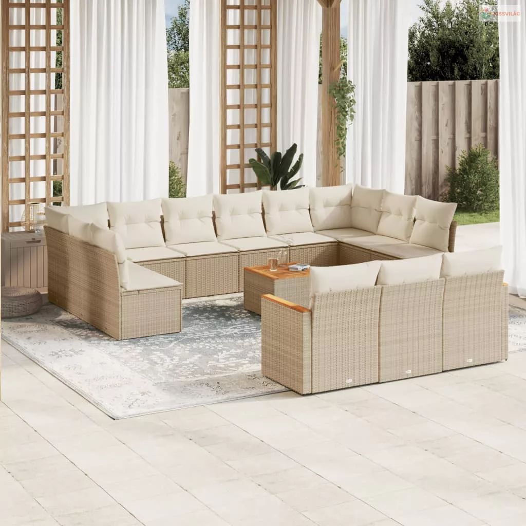 14 részes bézs polyrattan kerti ülőgarnitúra párnával