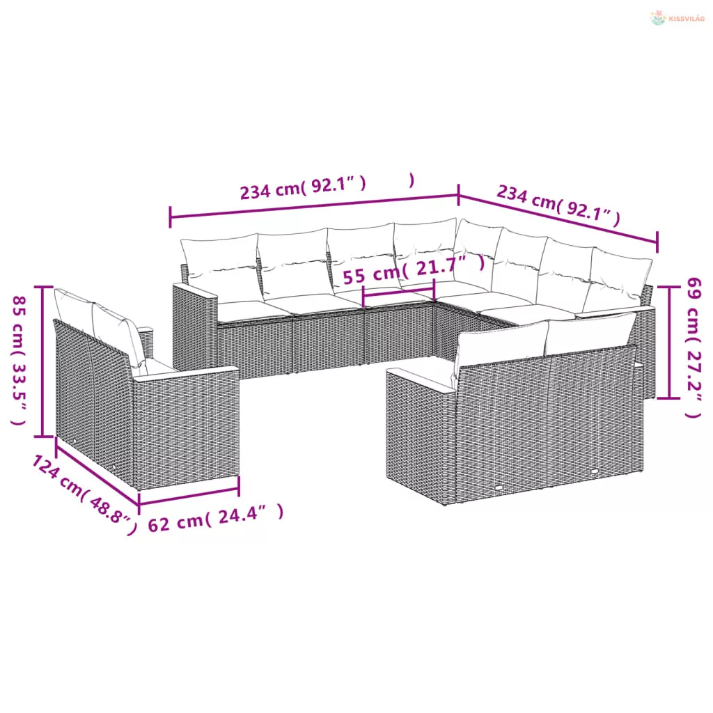 11 részes bézs polyrattan kerti ülőgarnitúra párnákkal