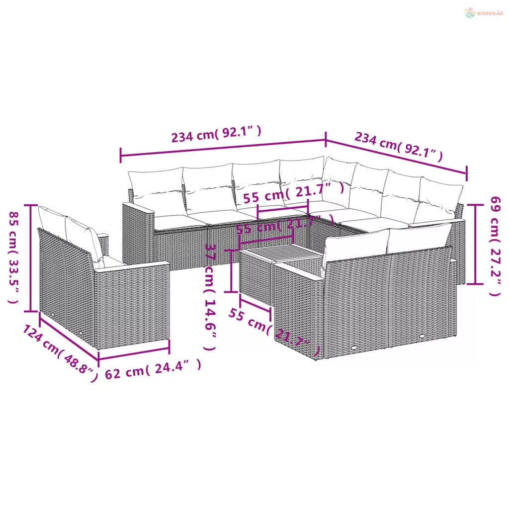 12 részes szürke polyrattan kerti ülőgarnitúra párnákkal