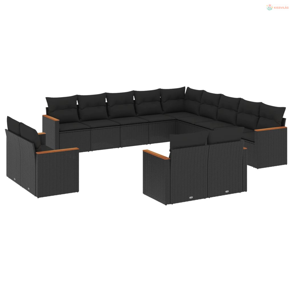 13 részes fekete polyrattan kerti ülőgarnitúra párnákkal