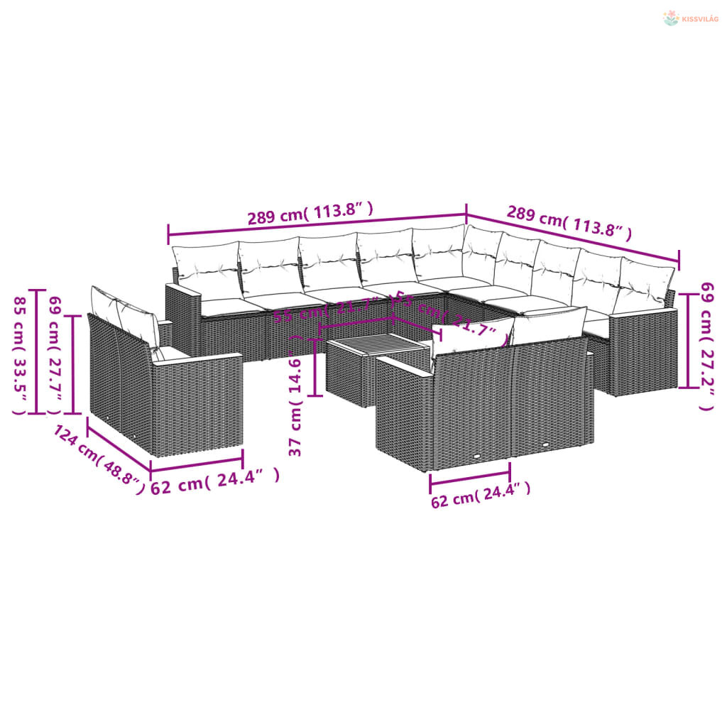 14 részes bézs polyrattan kerti ülőgarnitúra párnával