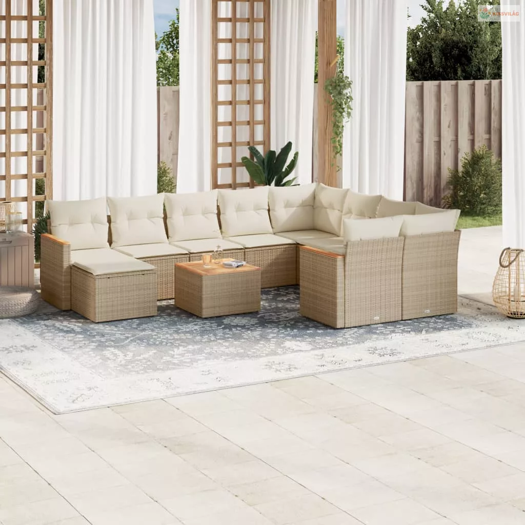 11 részes bézs polyrattan kerti ülőgarnitúra párnákkal