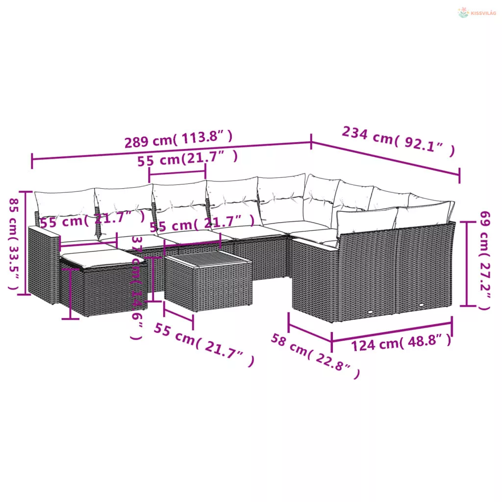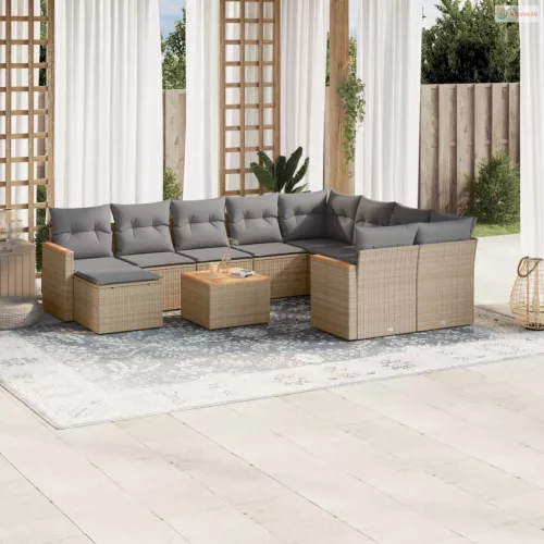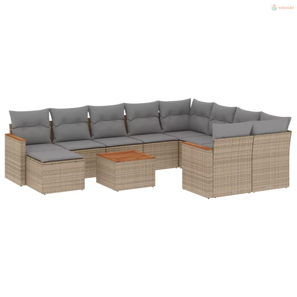 11 részes bézs polyrattan kerti ülőgarnitúra párnákkal