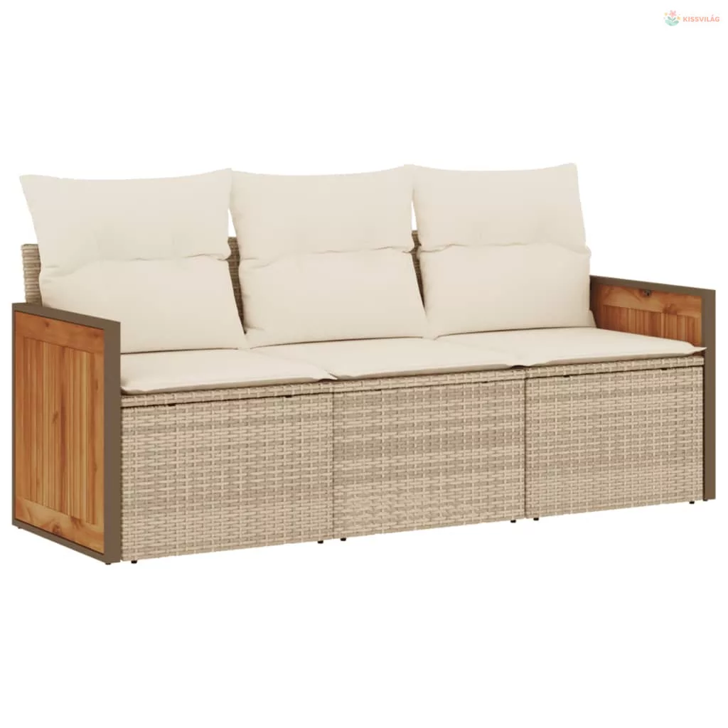 3 részes bézs polyrattan kerti ülőgarnitúra párnákkal