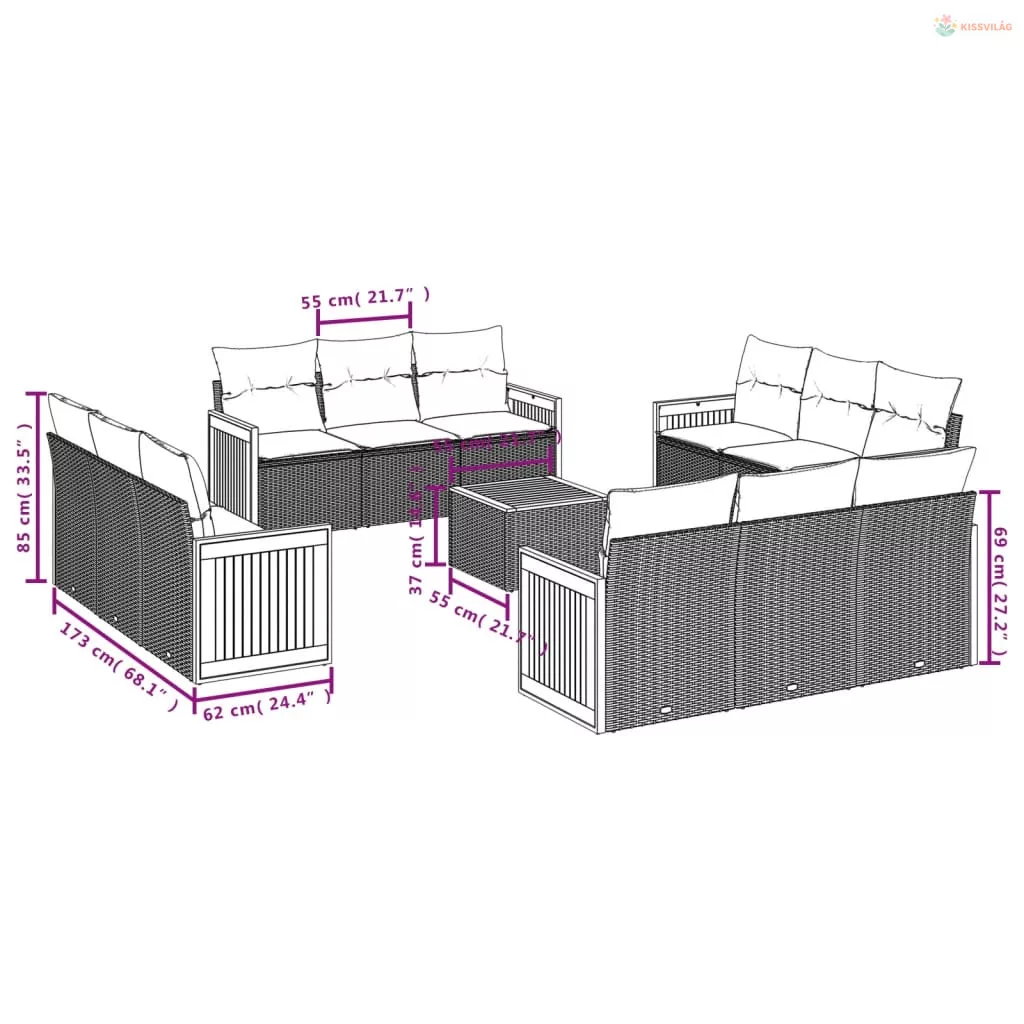 13 részes fekete polyrattan kerti ülőgarnitúra párnákkal
