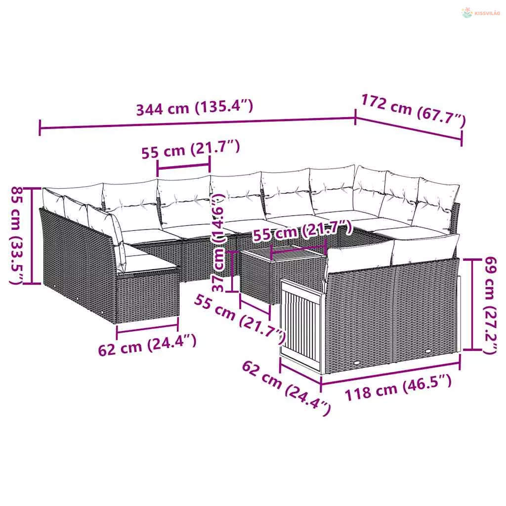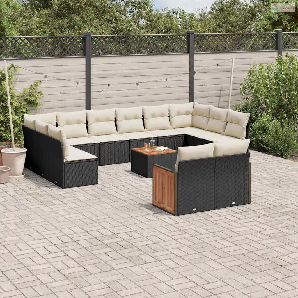 13 részes fekete polyrattan kerti ülőgarnitúra párnákkal