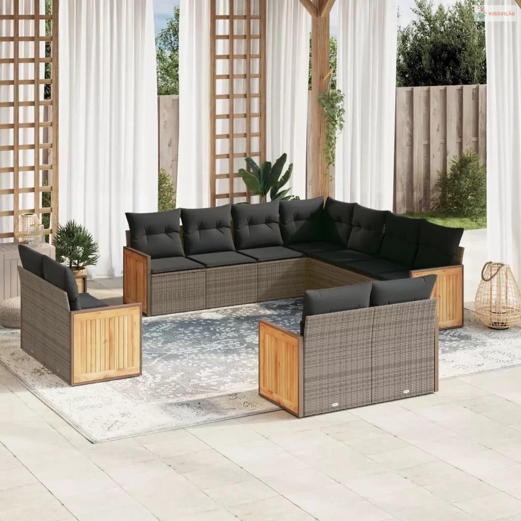 11 részes szürke polyrattan kerti ülőgarnitúra párnákkal