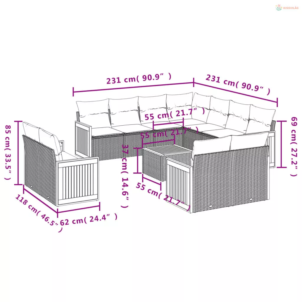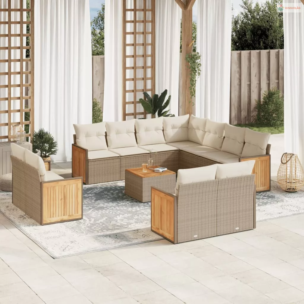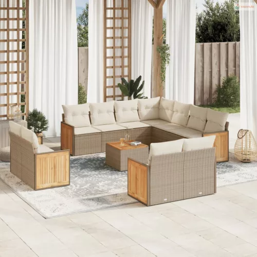 12 részes bézs polyrattan kerti ülőgarnitúra párnákkal