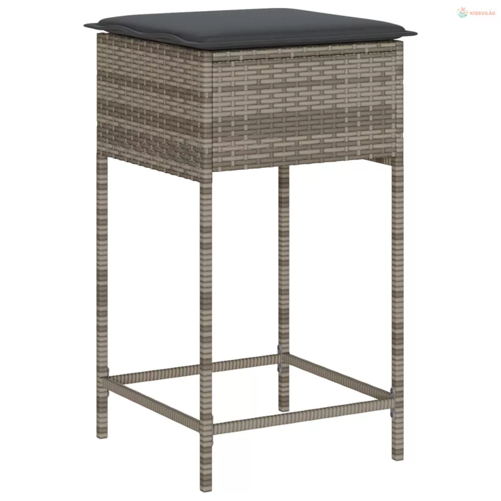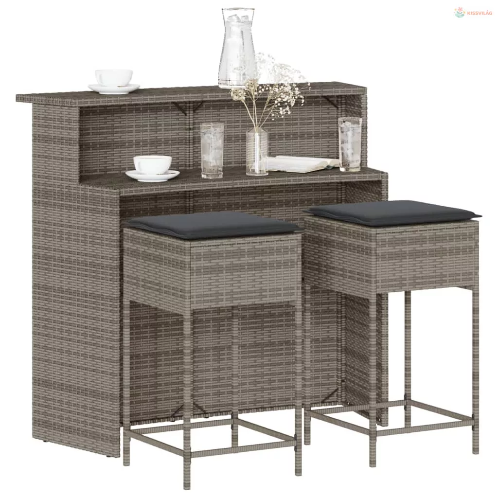 3 részes szürke polirattan kerti bárszett párnákkal