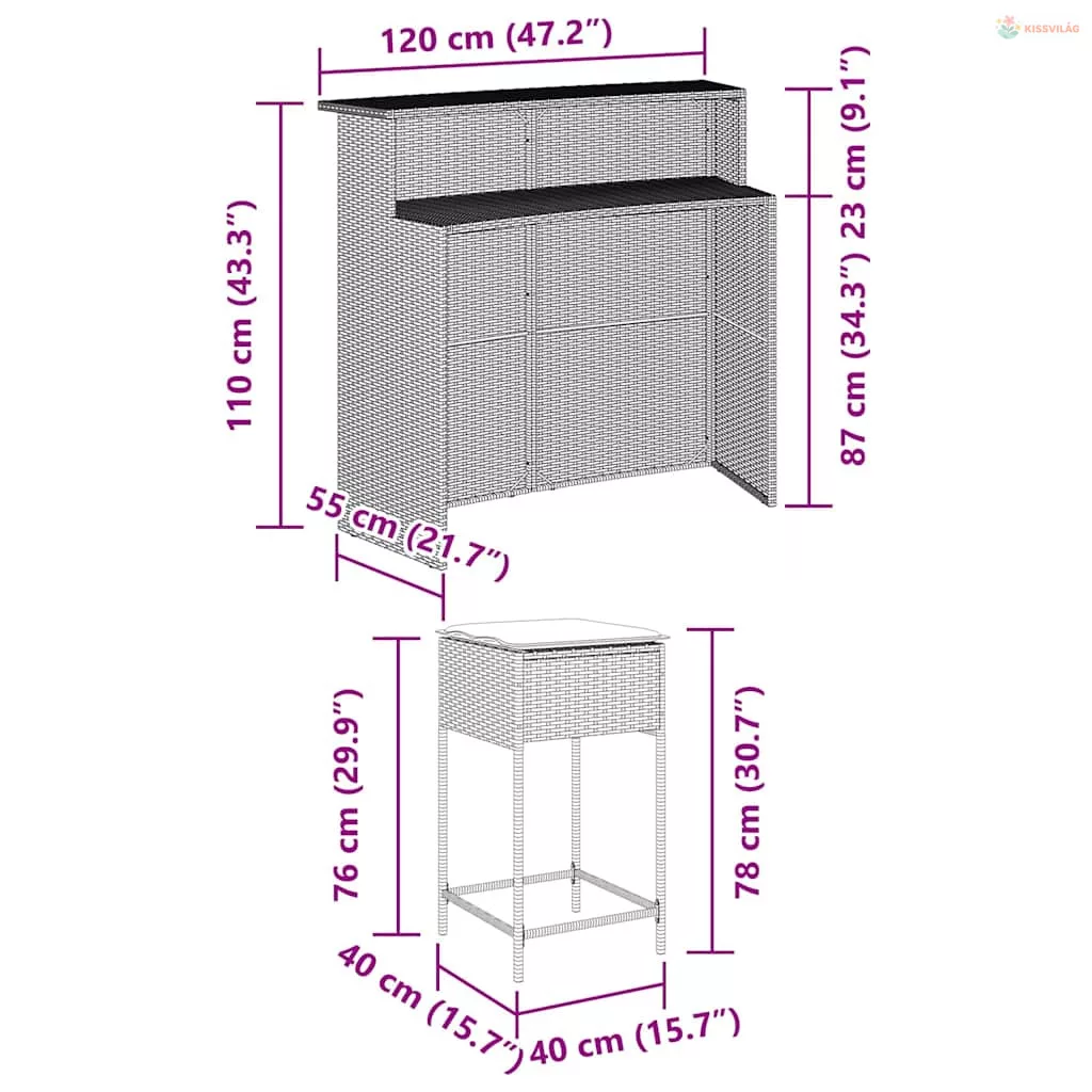 Ez a divatos kerti bárszett, amely egyszerre elegáns és praktikus, garantáltan kertje, udvara vagy bármilyen egyéb környezet központi eleme lesz.