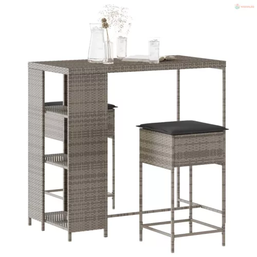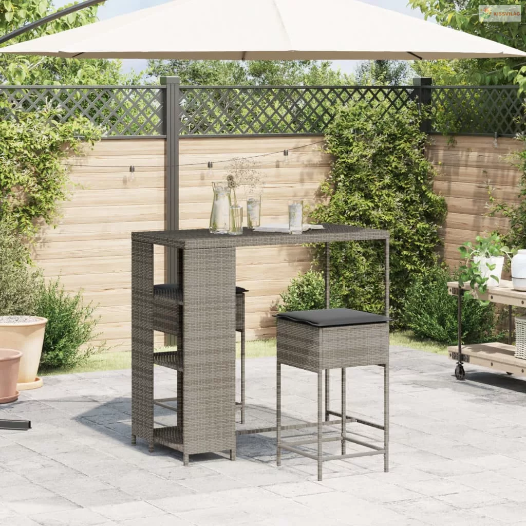 3 részes szürke polirattan kerti bárszett párnákkal